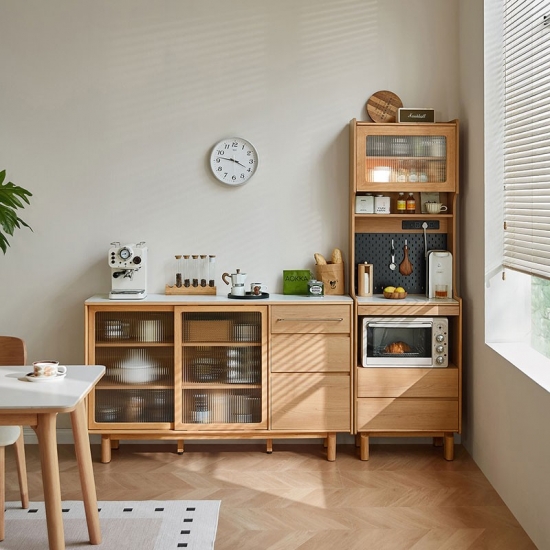 7Многофункциональный шкаф-буфет с узкими бортами из светлого дерева UB6T-A
