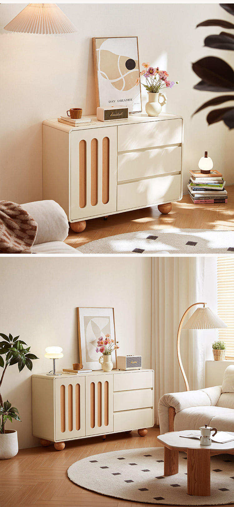 7Прекрасный шкаф в скандинавском стиле белого цвета с ящиками UD3E-A