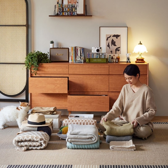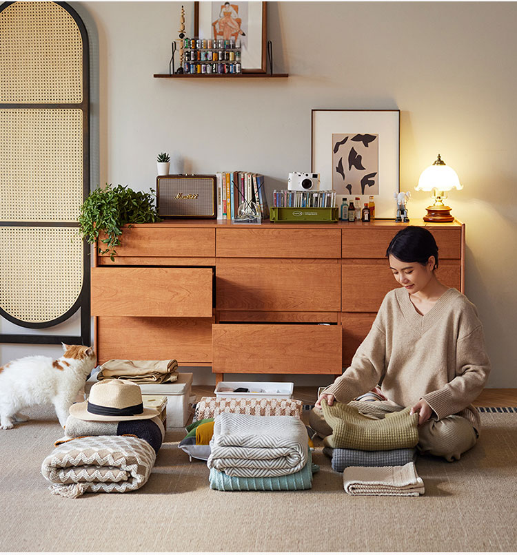 7Деревянный шкаф для хранения вещей в скандинавском стиле с ящиками KQ3E-A