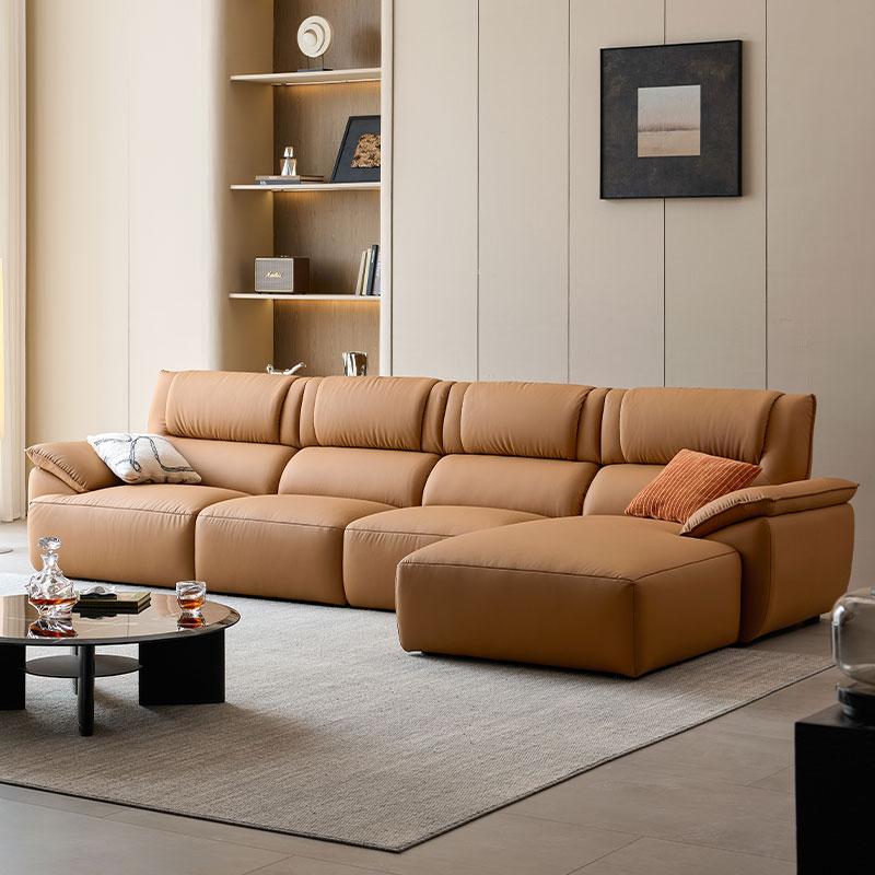 Современный кожаный диван LINSY оранжевого цвета с кушеткой BS861-A |