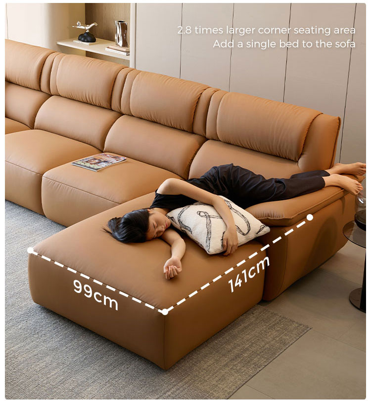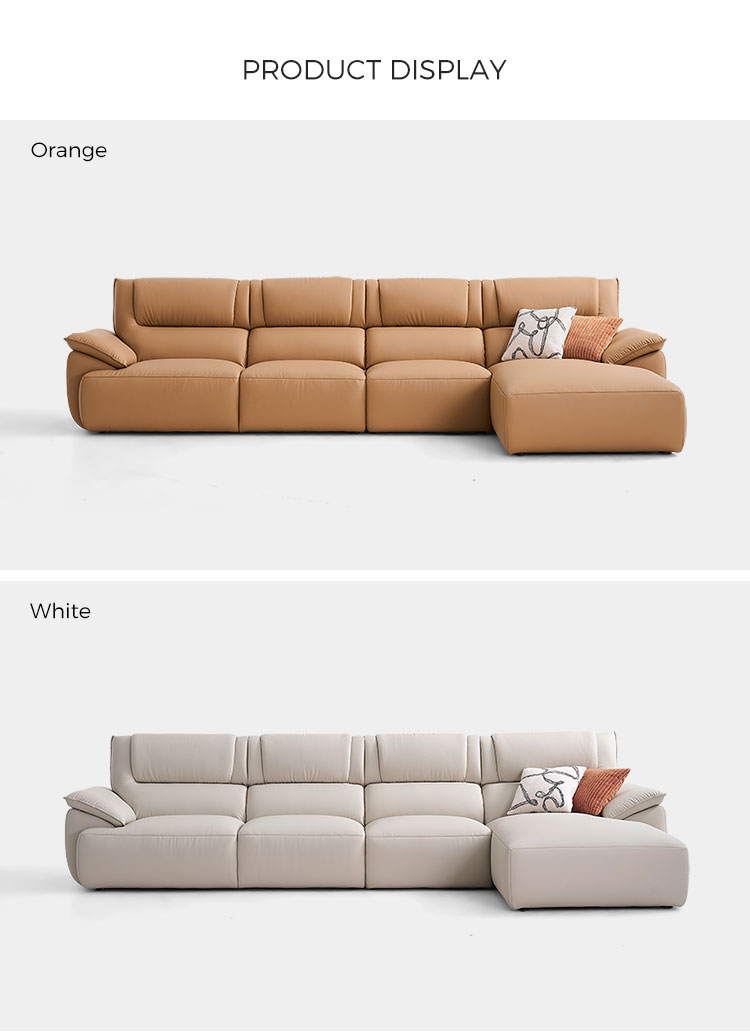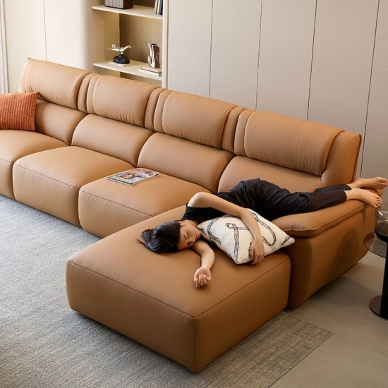 7Современный кожаный диван LINSY оранжевого цвета с кушеткой BS861-A