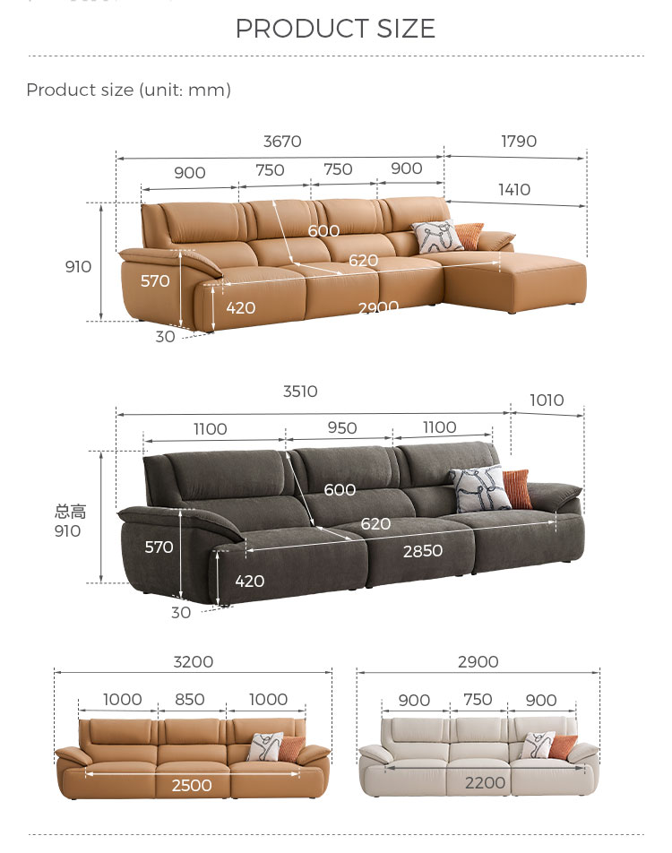 LINSY Популярный стильный домашний диван из натуральной кожи PS060-A Читать больше