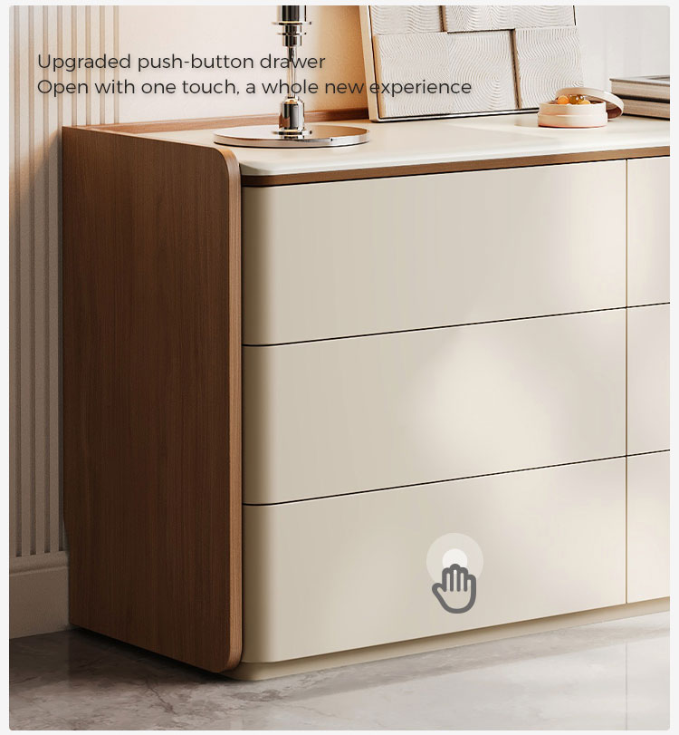 Украсьте свою повседневную жизнь и интерьер спальни этим изысканным комодом с шестью ящиками и зеркалом. Этот универсальный предмет мебели гармонично сочетает в себе вместительное пространство для хранения, отдельный уголок для макияжа и изысканный стиль. Благодаря шести плавно выдвигающимся ящикам, этот комод предлагает достаточно места для хранения одежды, аксессуаров, постельного белья и косметических средств. Храните свои вещи аккуратно спрятанными, но легко доступными.