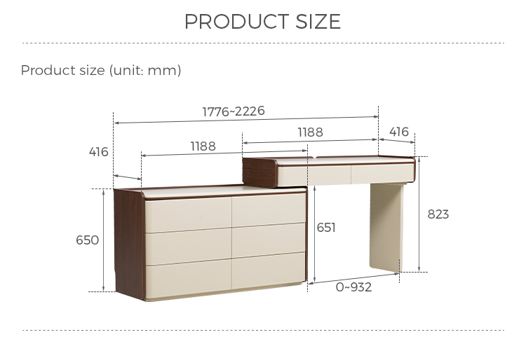 Гармоничный дизайн: Этот туалетный столик, выполненный с чистыми линиями и качественной отделкой, воплощает в себе вневременную элегантность. Благодаря гармоничному дизайну зеркало, ящики и рама гармонично сочетаются друг с другом, создавая центр изысканной роскоши.