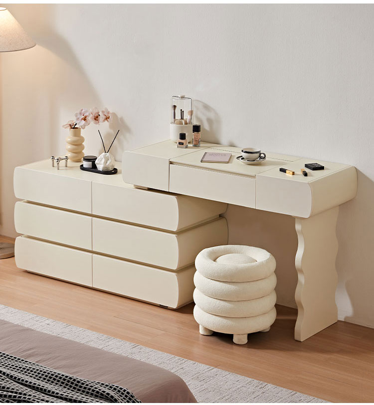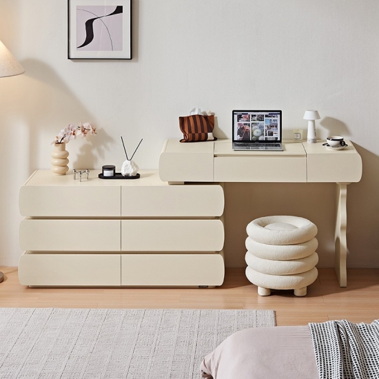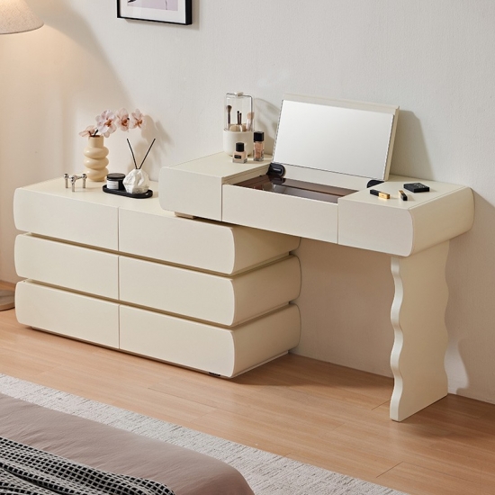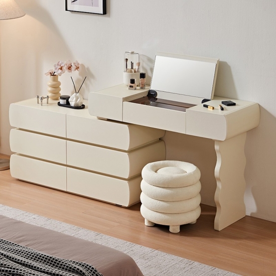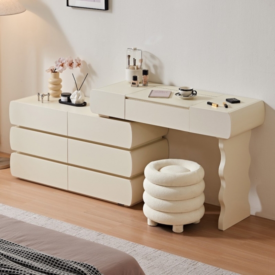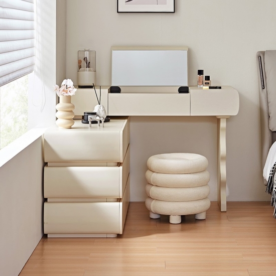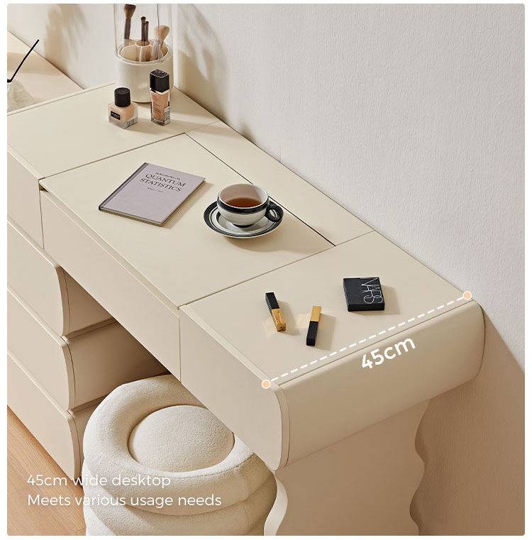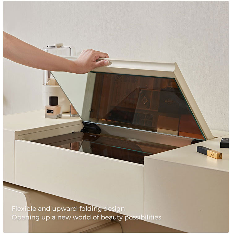 Специальная столешница: Просторная поверхность идеально подходит для ваших косметических ритуалов. Элегантно разместите духи, средства по уходу за кожей или шкатулки для украшений.