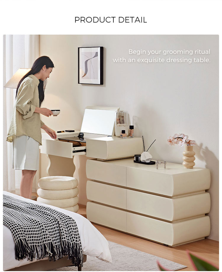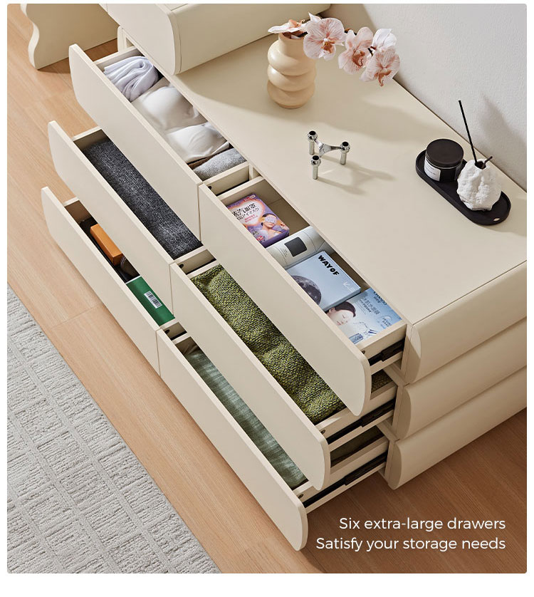 Преобразите свою повседневную жизнь и эстетику спальни с помощью этого изысканного комода с шестью выдвижными ящиками и зеркалом RI2C-B. Этот универсальный предмет мебели органично сочетает в себе вместительное хранилище, специальное место для косметики и утонченный стиль. Шесть плавно выдвигающихся ящиков обеспечивают достаточно места для организации одежды, аксессуаров, постельного белья или косметических принадлежностей. Храните свои вещи аккуратно сложенными, но при этом легкодоступными. Это отличный выбор для вашего дома.