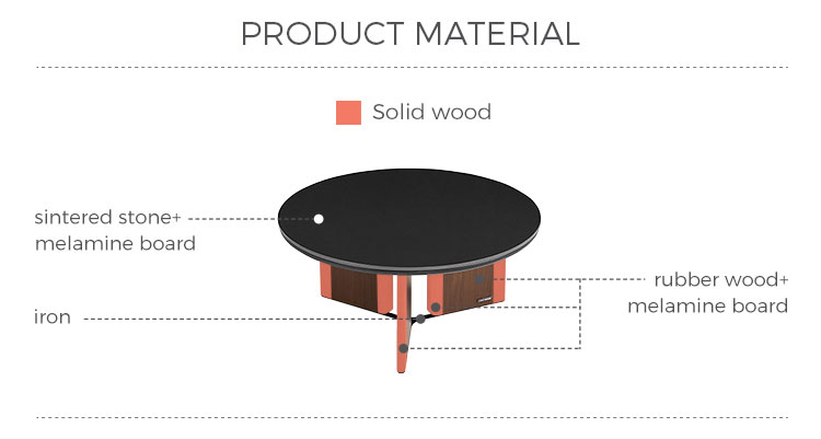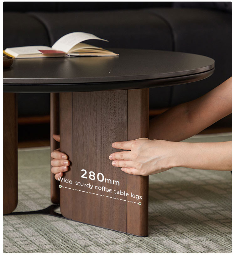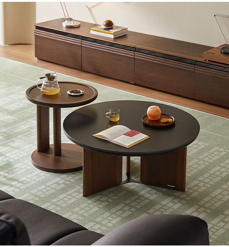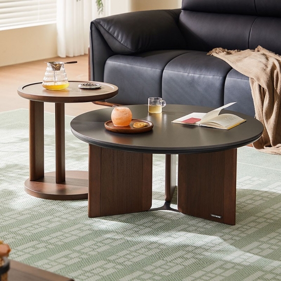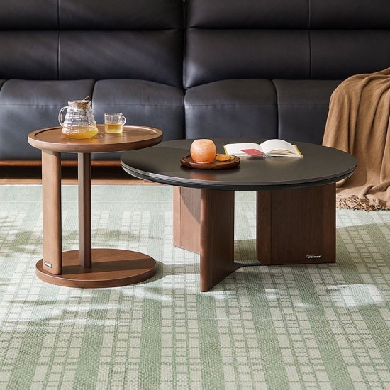 7Круглый журнальный столик цвета ореха со столешницей из спеченного камня UY2L-A