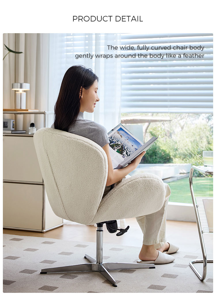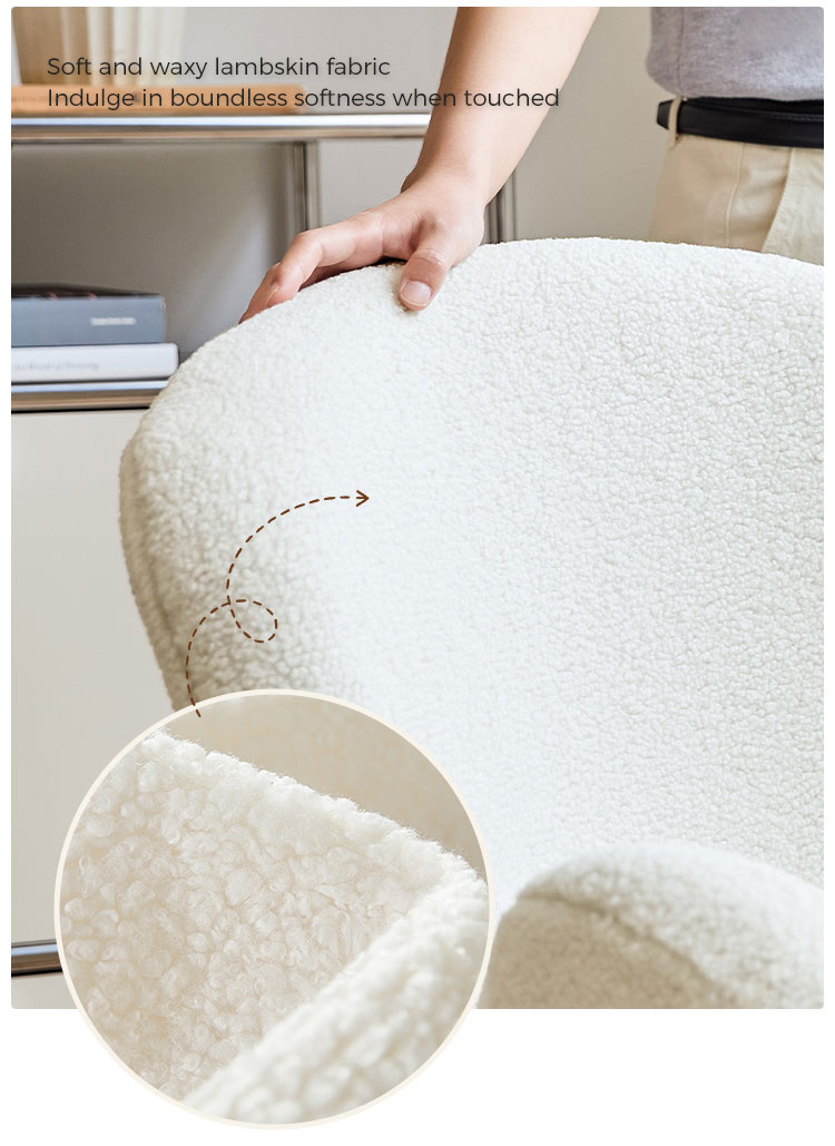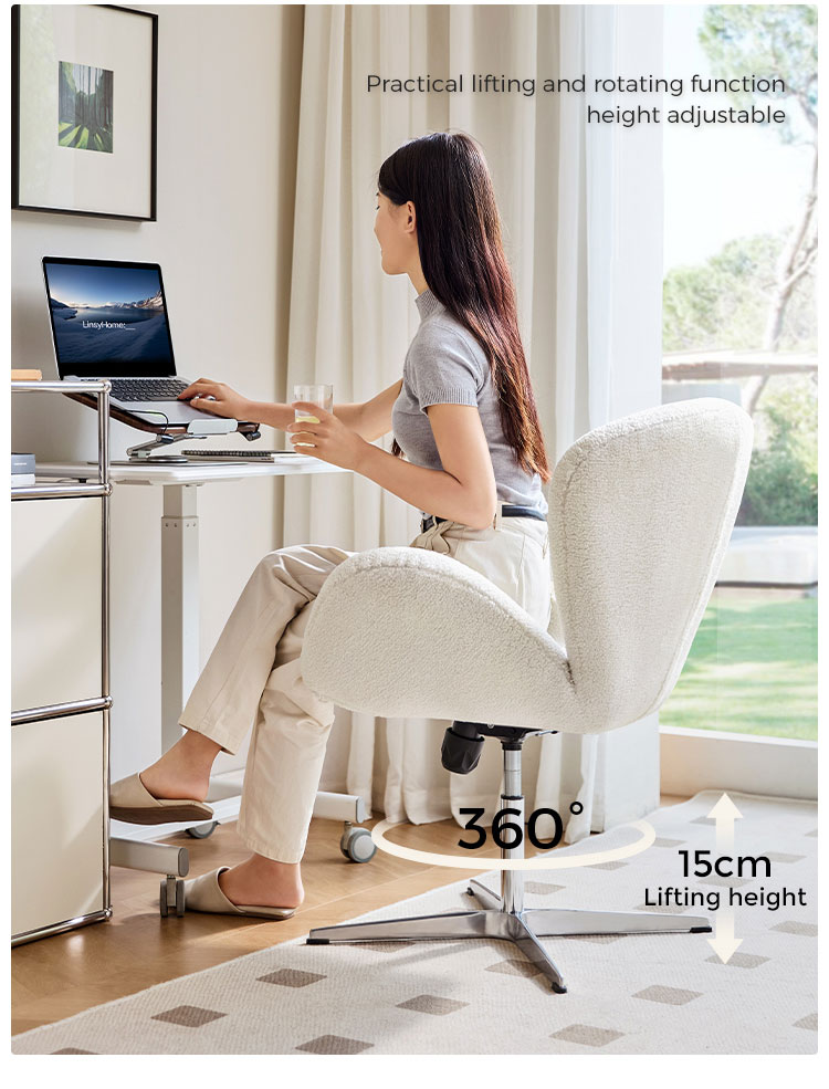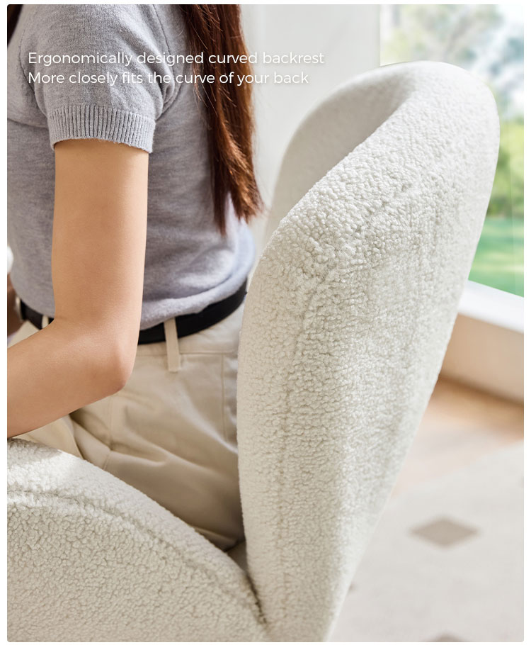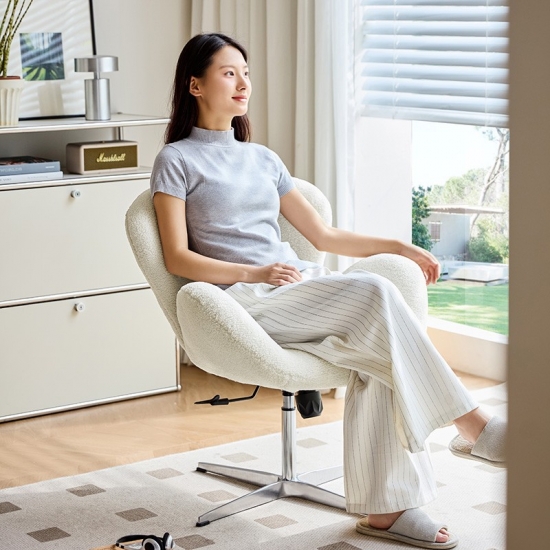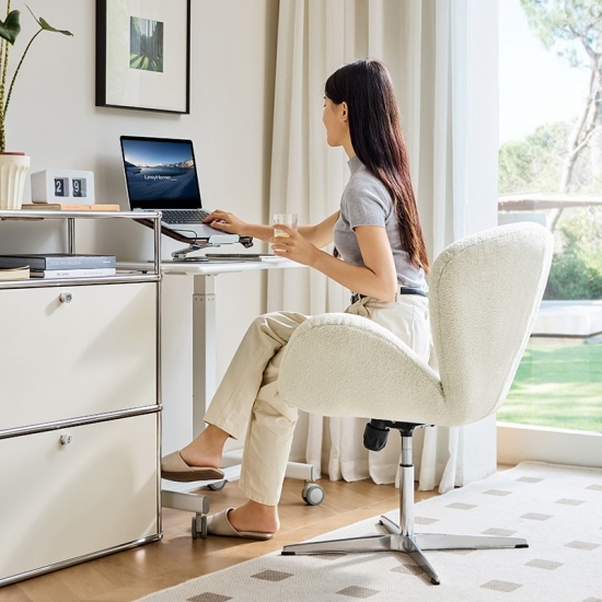 Обивка из высококачественной белой ткани создаёт чистый и элегантный вид, который к тому же невероятно легко чистить. Эргономичный дизайн обеспечивает необходимую поддержку поясницы и способствует здоровой осанке, делая долгие часы работы за столом заметно комфортнее.