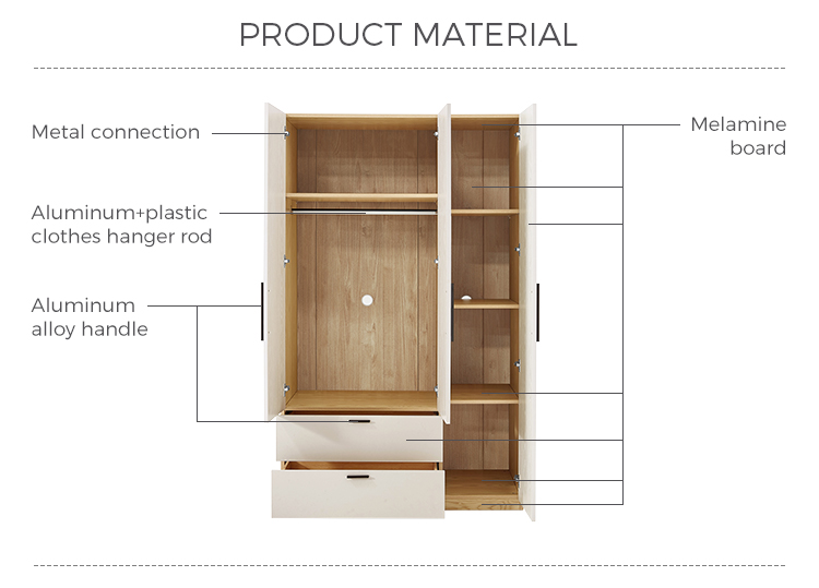 7Белый цвет Простой дизайн Домашний Трехдверный Шкаф JC16D-A
